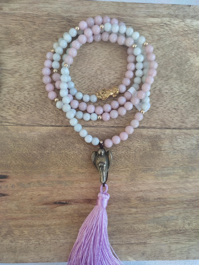 Kala en Opale rose et Jade blanc 6mm đź’ť Ange en pyrite