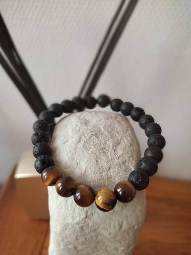 Pierre De Lave Et Œil De Tigre 8 Mm